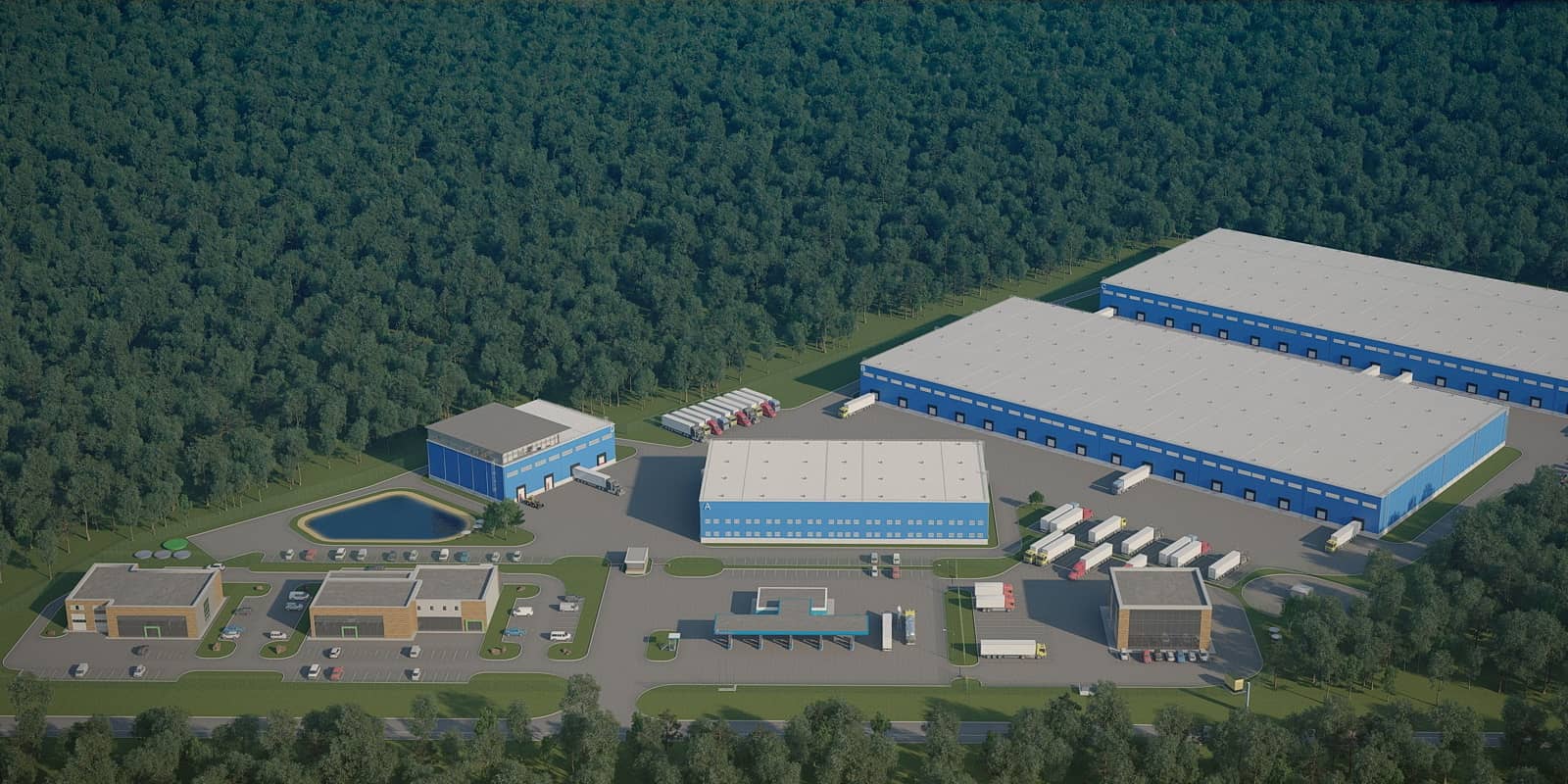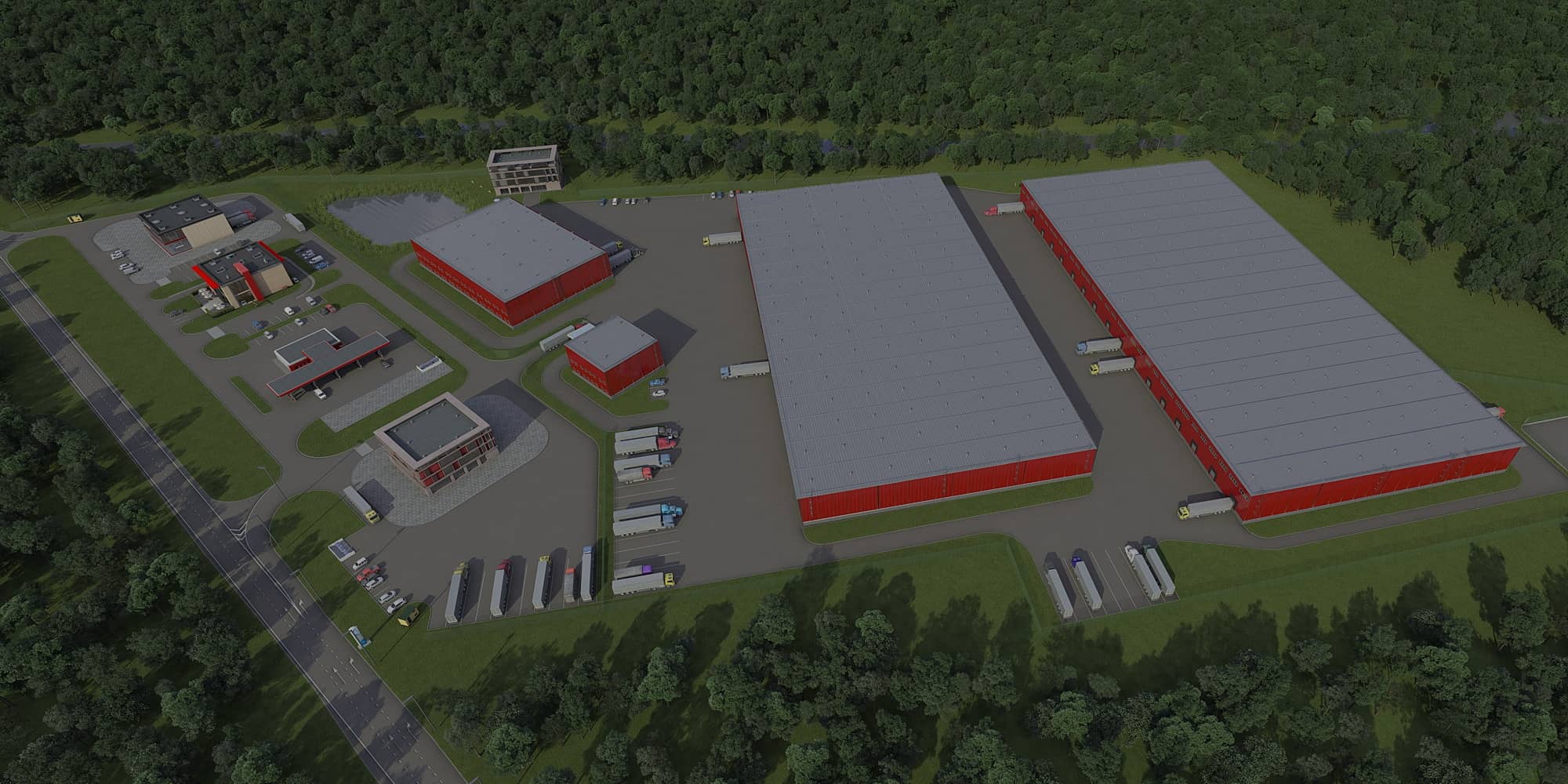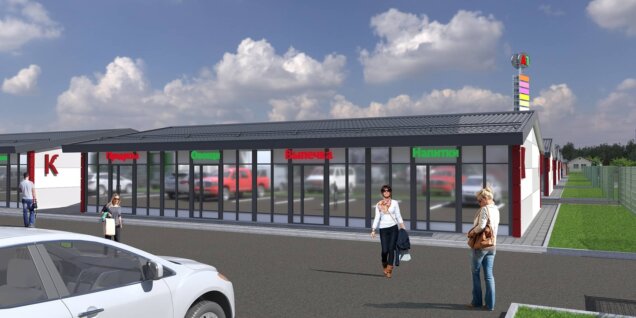 Торговые павильоны, образующие первую очередь Торгового комплекса, общей площадью 1950 кв.м., установлены на земельном участке вдоль первой линии трассы А-108 (Московское Большое кольцо. На равноудаленном расстоянии между двух федеральных трасс: М-8 Ярославское ш. и М-7 Горьковское ш.